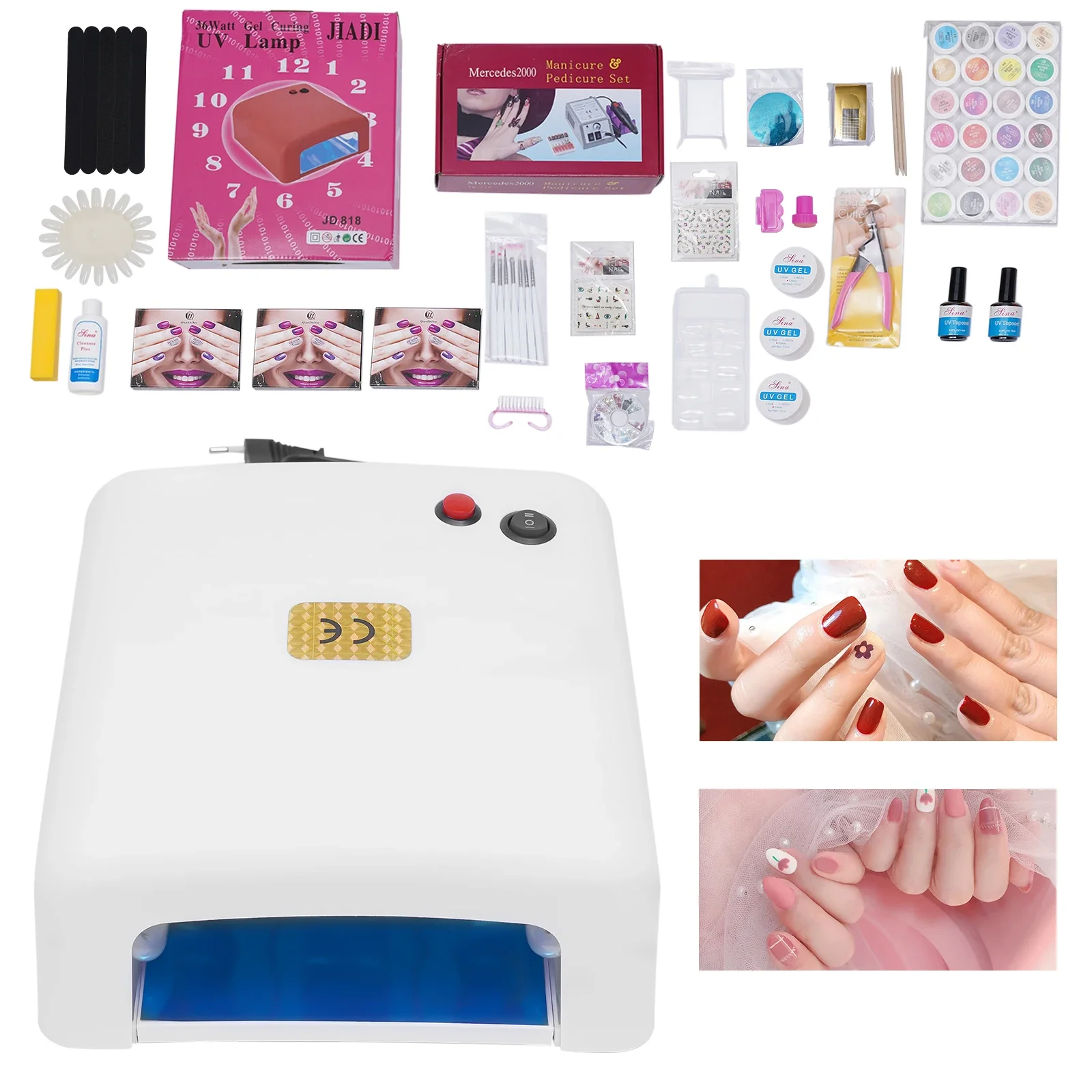 Set professionale per nail studio Set gel UV con tagliaunghie con taglierina Lampada per unghie 36W/Lampada UV Kit per unghie gel Set per principianti