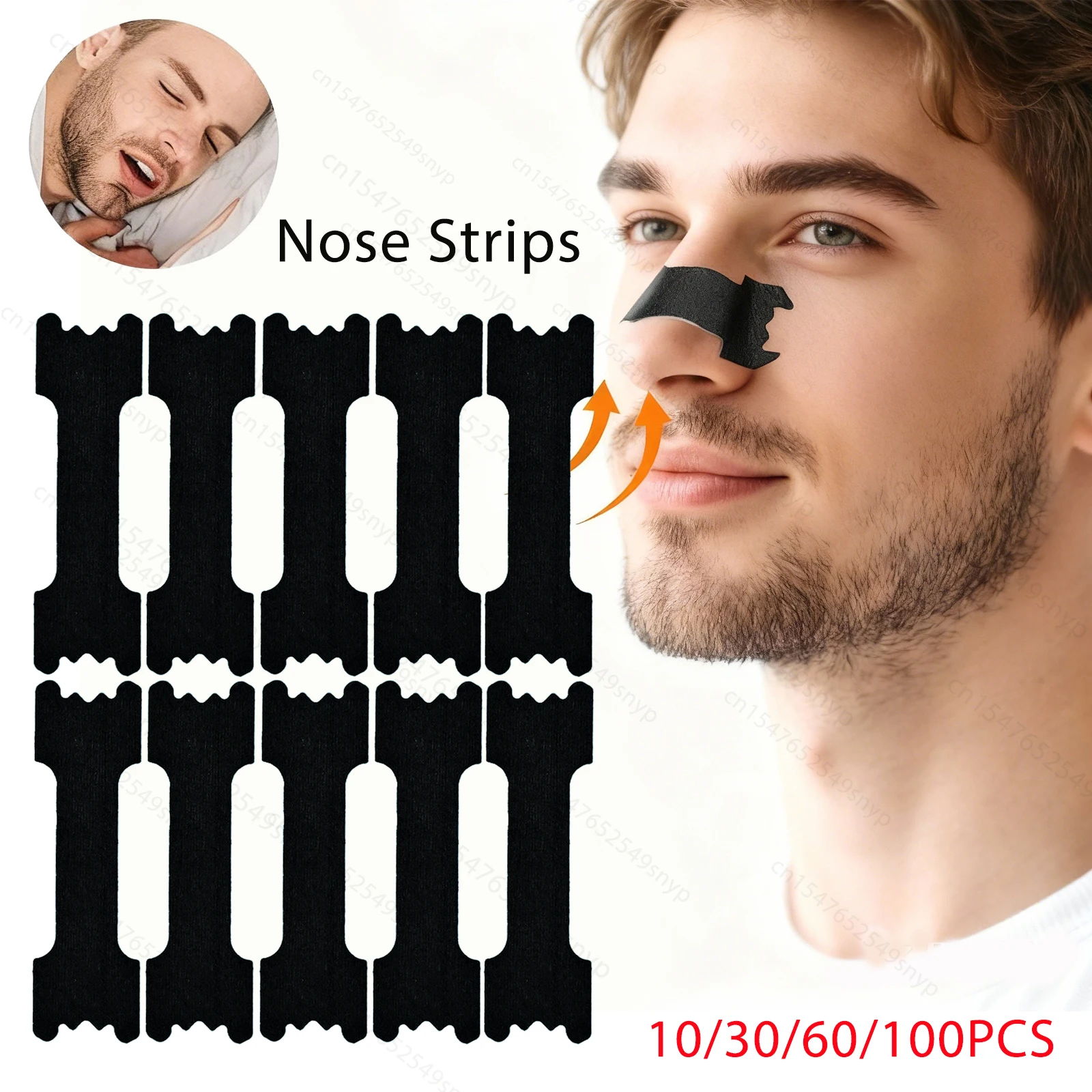 60/30/10 Pezzi Cerotti Nasali Neri Extra Forti, Strisce Nasali per Migliorare il Sonno, Non Invasive, Anti-Russamento per Adulti e Bambini