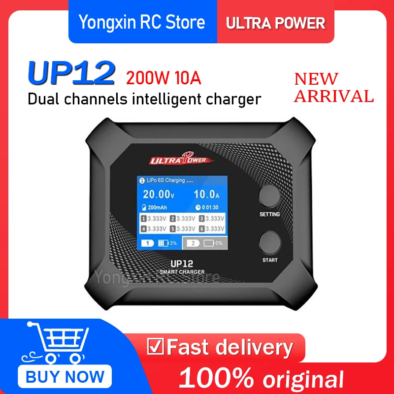 Caricabatterie Intelligente UltraPower UP12 AC200W ad Alta Definizione con Schermo a Colori, Ricarica Rapida a Doppio Canale per RC 2A Adattivo in Alluminio