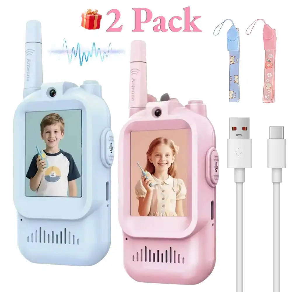 Set di 2 Walkie Talkie Video per Bambini, Ricaricabili, Giocattoli per Interni, Campeggio, Viaggi, Regali di Compleanno per Bambini dai 3 ai 12 Anni
