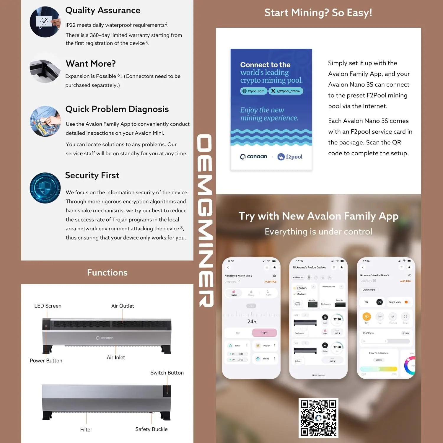KO ACQUISTA 2 RICEVI 1 GRATIS Canaan Avalon Mini 3 BTC Riscaldatore Minatore 800W 37,5 TH/s Bitcoin ASIC Mining di criptovaluta a doppia funzione con W