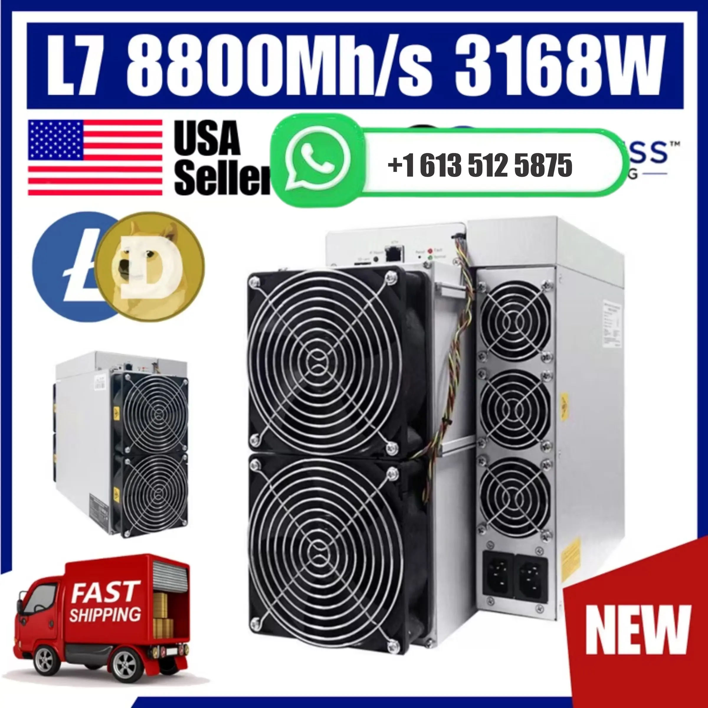 JY Compra 5 Ottieni 3 Gratis Nuovissimo Antminer L7 9050Mh/s 3260W per Doge Coin e Litecoin LTC con Algoritmo Scrypt e Alimentatore.