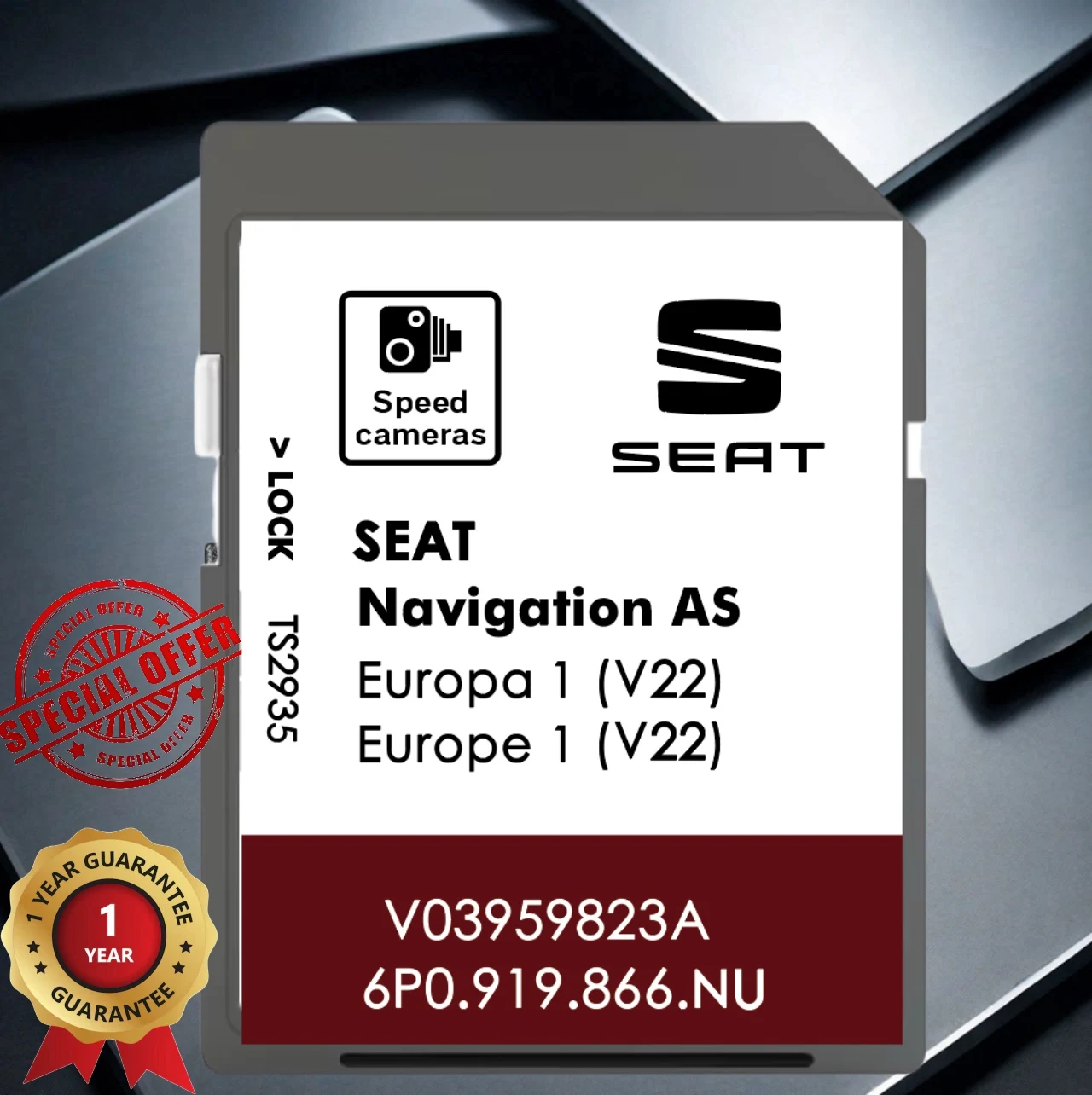 Seat 6P0919866NU Sat Nav Memoria SD Navigazione Scheda da 32 GB V22 MIB2 Europa 2025 con telecamera veloce per Arona Toledo