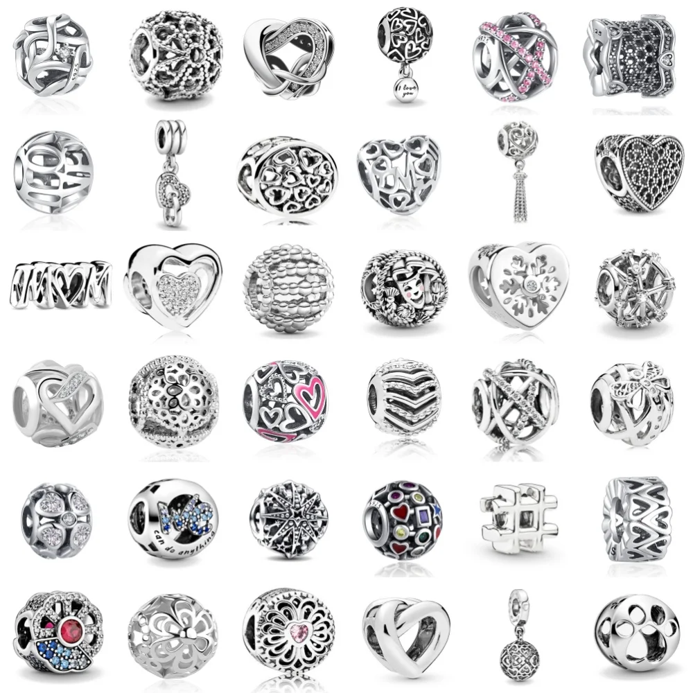 Ciondolo Charm a Cuore Traforato in Argento 925 Classico Stile Retrò, Compatibile con Bracciali Originali, Accessorio per Gioielli Fai-da-Te da Donna, Idea Regalo