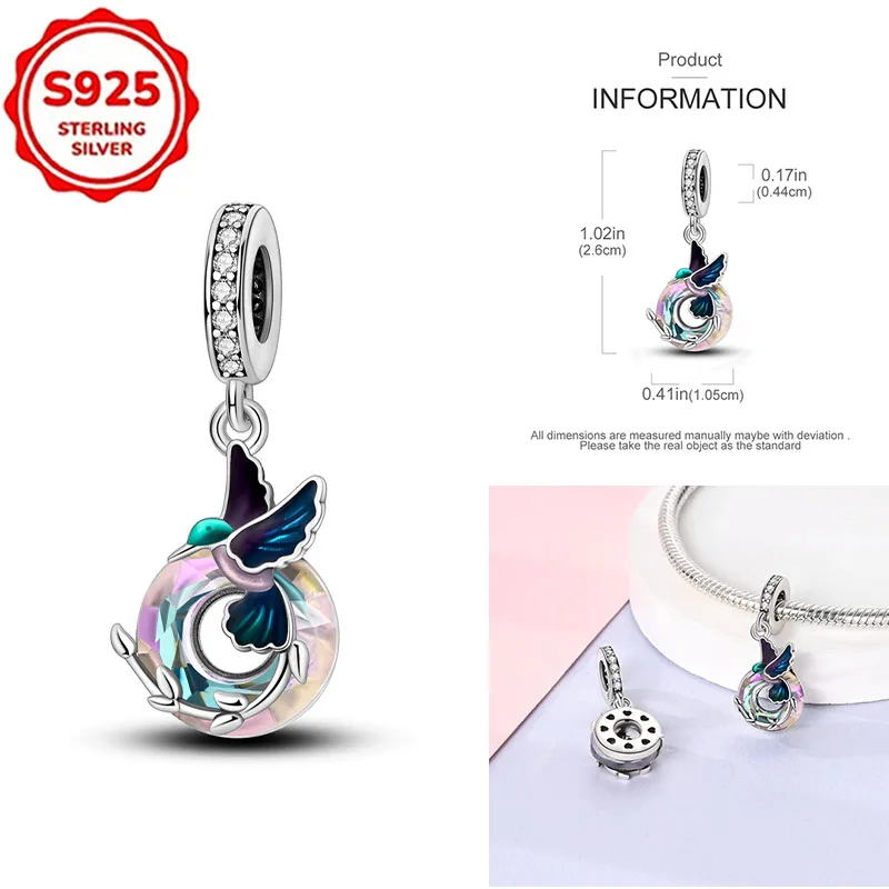 Nuovi Charm in Argento Sterling 925, Ciondolo a Forma di Colibrì Smaltato Iridescente, Perline per Bracciali Originali da Donna, Gioielli Fai-da-Te, Regali