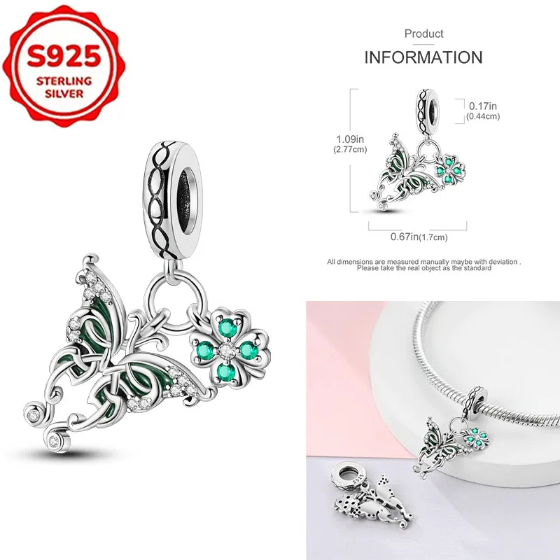 Nuovi Charm in Argento Sterling 925, Ciondolo a Quadrifoglio e Farfalla, Perline per Bracciali Originali da Donna, Gioielli Fai-da-Te, Regali