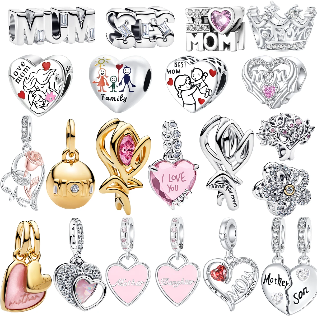 Nuovi Charm Originali in Argento Sterling 925 a Forma di Cuore, Tulipano e Rosa, Perline per Bracciali e Collane, Gioielli Fai-da-Te da Donna, Regalo per la Festa della Mamma