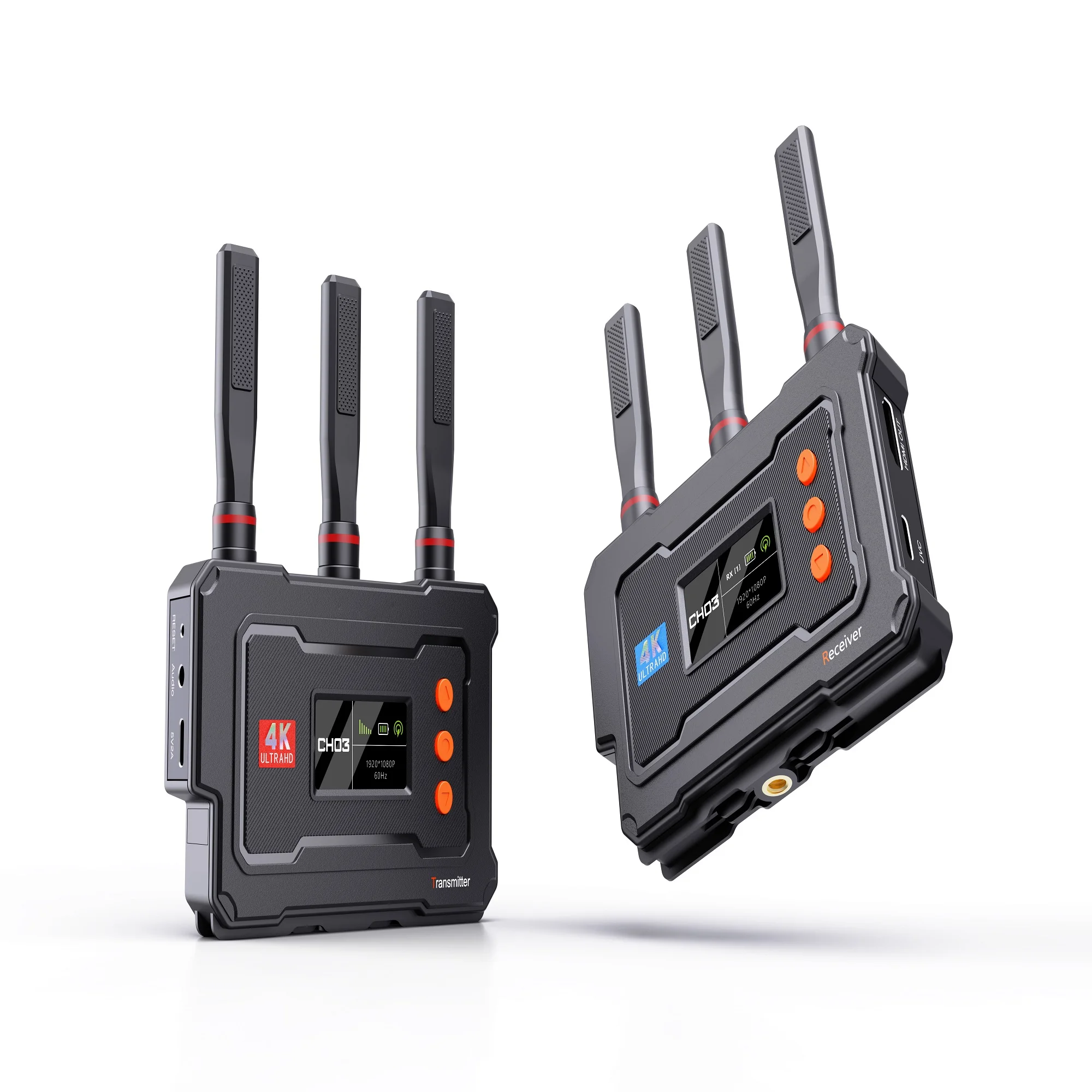Kit di Trasmissione Video Wireless HDMI 4K, Portata 450M, Estensore Wireless, Trasmettitore e Ricevitore Video per Telecamere, Live Streaming, Chiesa, Casa