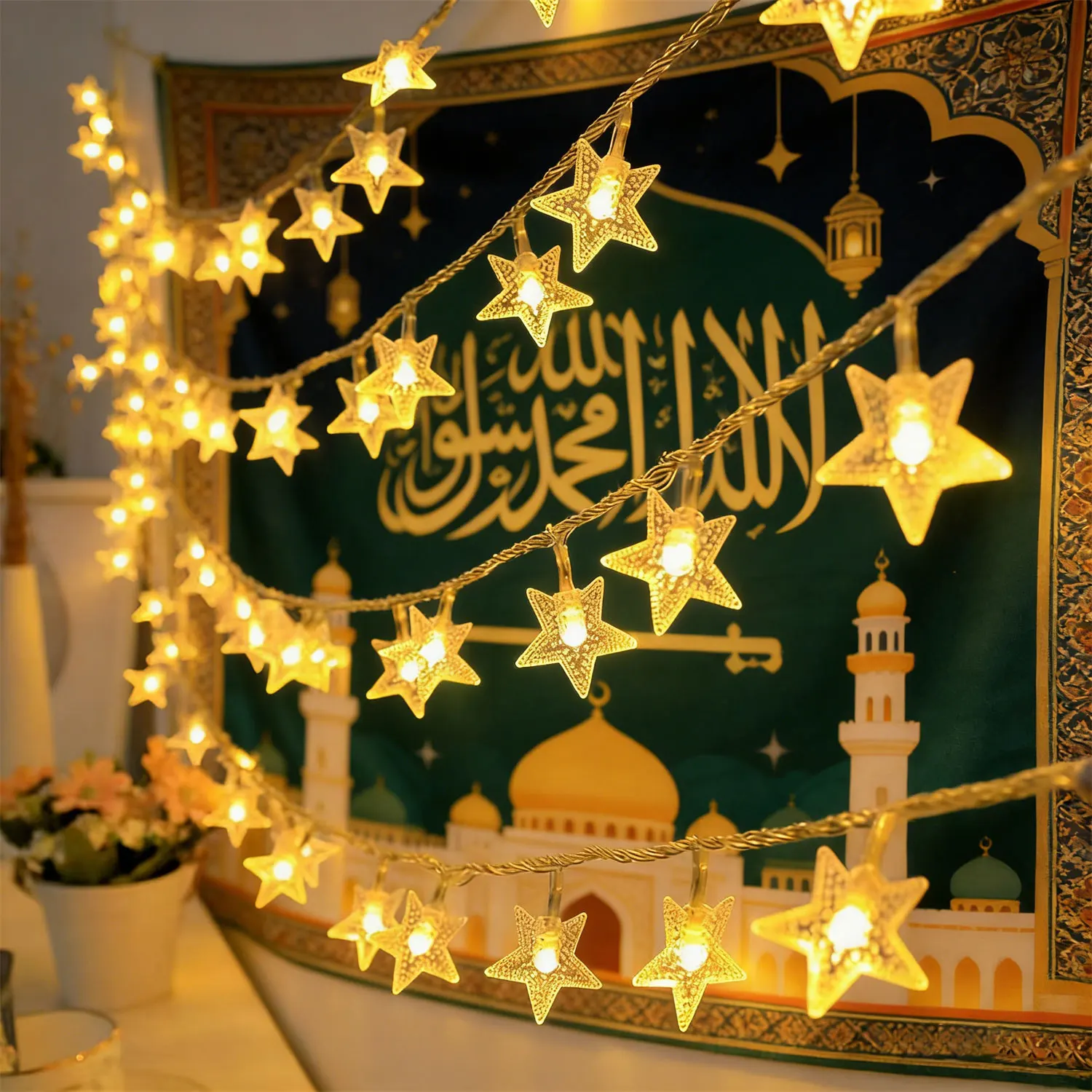 Luci a Stringa a Forma di Stella a Batteria, Decorazioni per Matrimoni, Feste, Interni ed Esterni, Ghirlande per Ramadan, Decorazioni per la Casa, Eid Mubarak