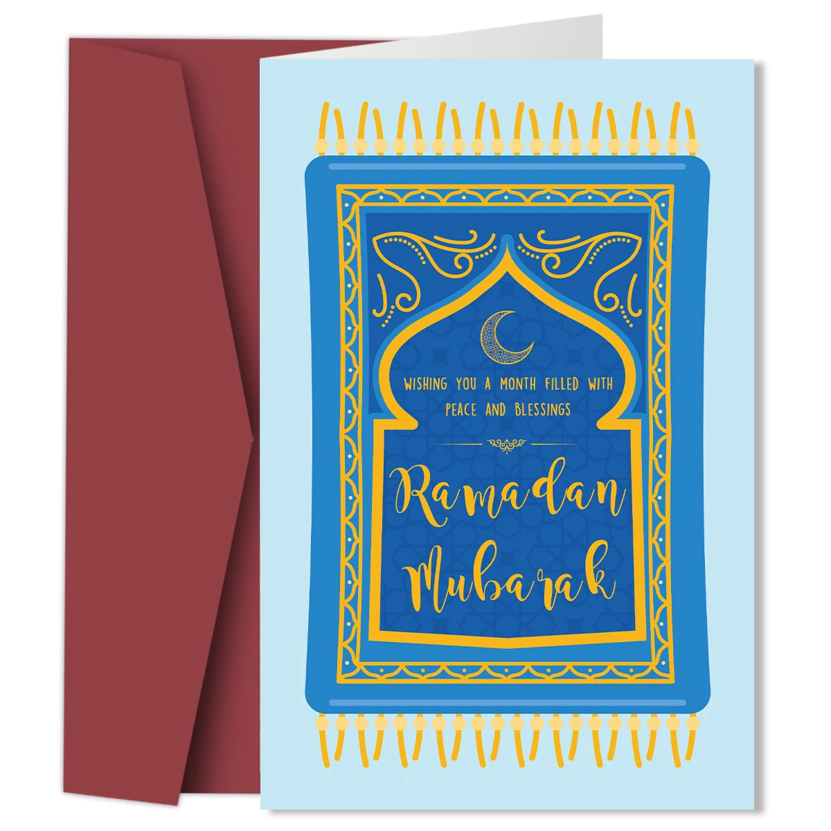 Biglietto Ramadan Mubarak con Busta, Cartolina con Design Blu e Dorato, Biglietto di Auguri per Eid Perfetto per la Celebrazione del Ramadan