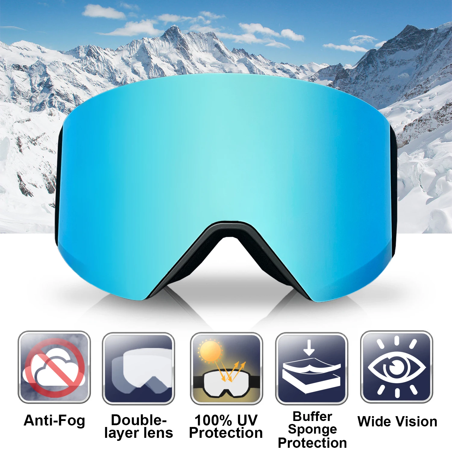 KAPVOE UV400 Lenti di attrazione magnetica Sport all'aria aperta Occhiali da sci fotocromatici Occhiali da snowboard da uomo Occhiali da sole da neve invernali da donna