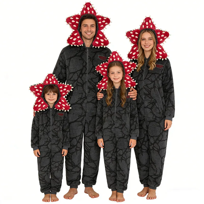 Set pigiama per cartoni animati coordinati per la famiglia Tuta morbida per bambini per adulti Film Tute intere per pigiama festivo Accappatoio per cosplay in famiglia