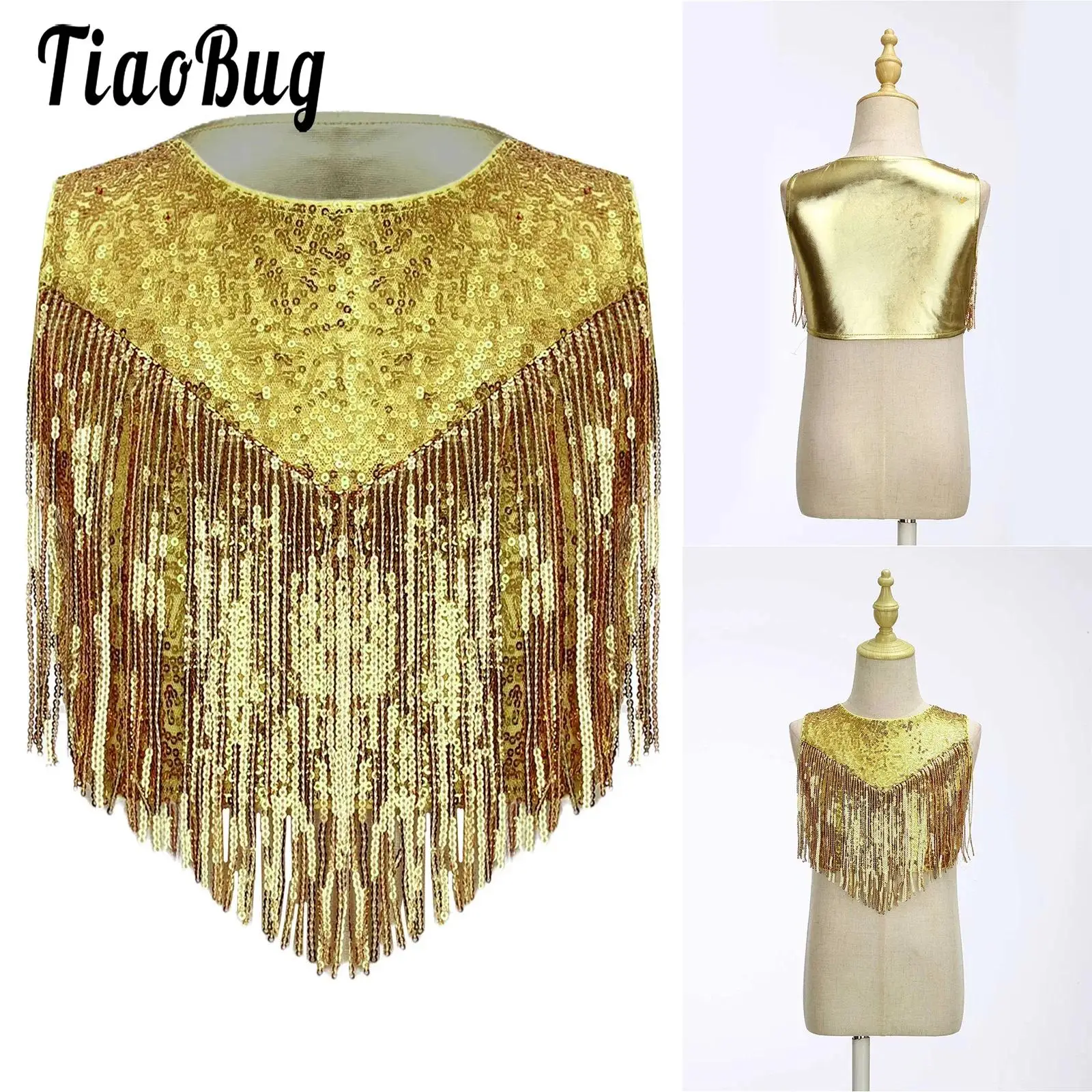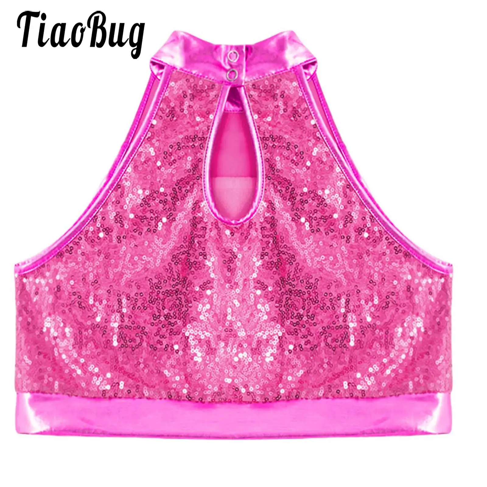 Top per bambini alla moda Canotta per bambini con paillettes lucide per ragazze Top corto senza maniche Gilet con paillettes metallizzate Costume da ballo jazz