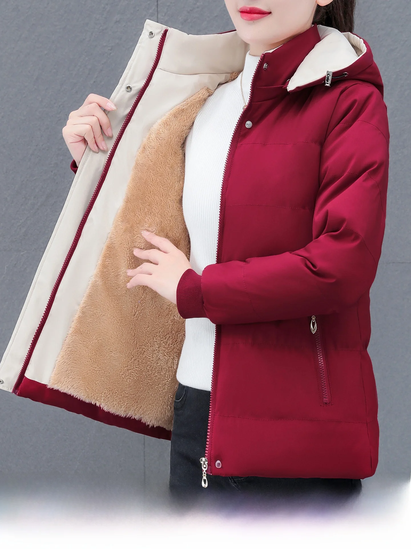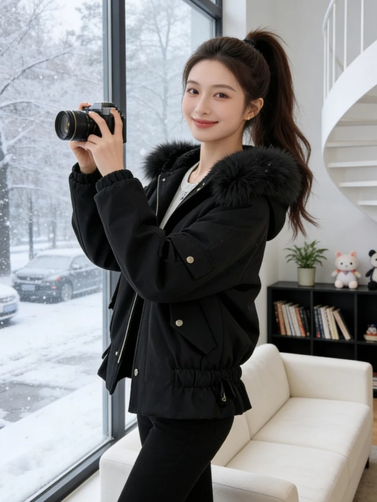 Sli Cappotto invernale unico da donna Thi caldo cotone Jaet coreano Sle vestibilità ampia chiusura con cerniera con cappuccio lunghezza ort
