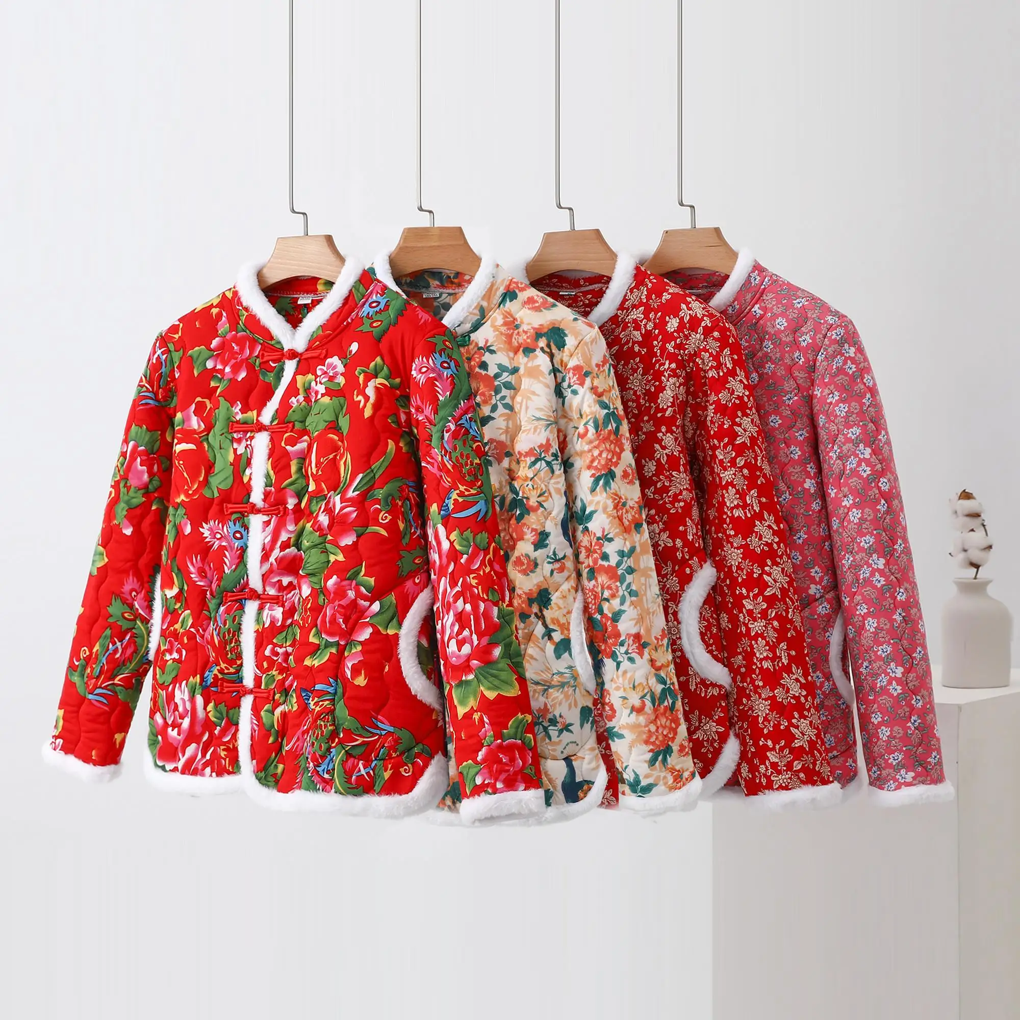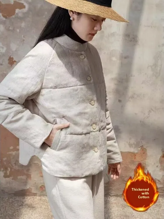 Giacca Corta da Donna in Cotone con Colletto e Bottoni, Stile Etnico, Nuova Collezione Invernale, Abbigliamento Esterno alla Moda, Tessuto in Poliestere di Alta Qualità