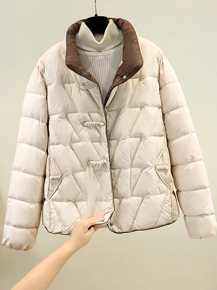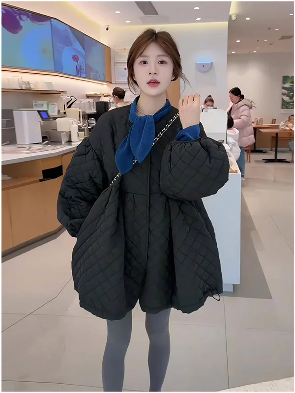 Ele Bla Diamond Pattern Loose Fit Thiened Cotton Jaet Donna Autunno Inverno Nuovo design Capispalla di media lunghezza