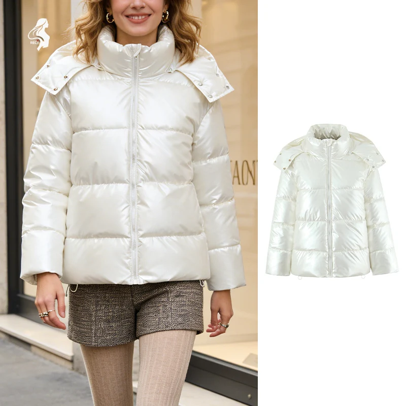 Giacca da donna in cotone lucido con cappuccio staccabile trapuntata con cerniera Cappotto da pendolare autunno inverno caldo e casual Abbigliamento donna