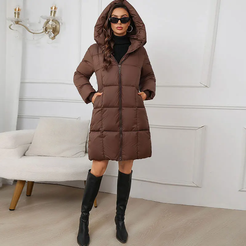 Hirsionsan 2025 Giacca da donna in cotone lungo con cappuccio dimagrante in vita casual, giacca in cotone caldo addensato, colore marrone