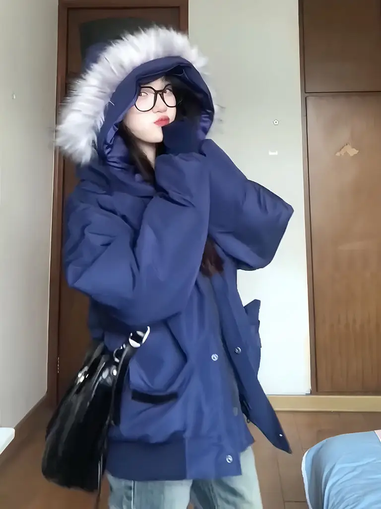 Inverno 2025 Cappotto in stile americano europeo delle nuove donne Imbottito in cotone Giacca a vita corta femminile Breve moda Allentato Overwear