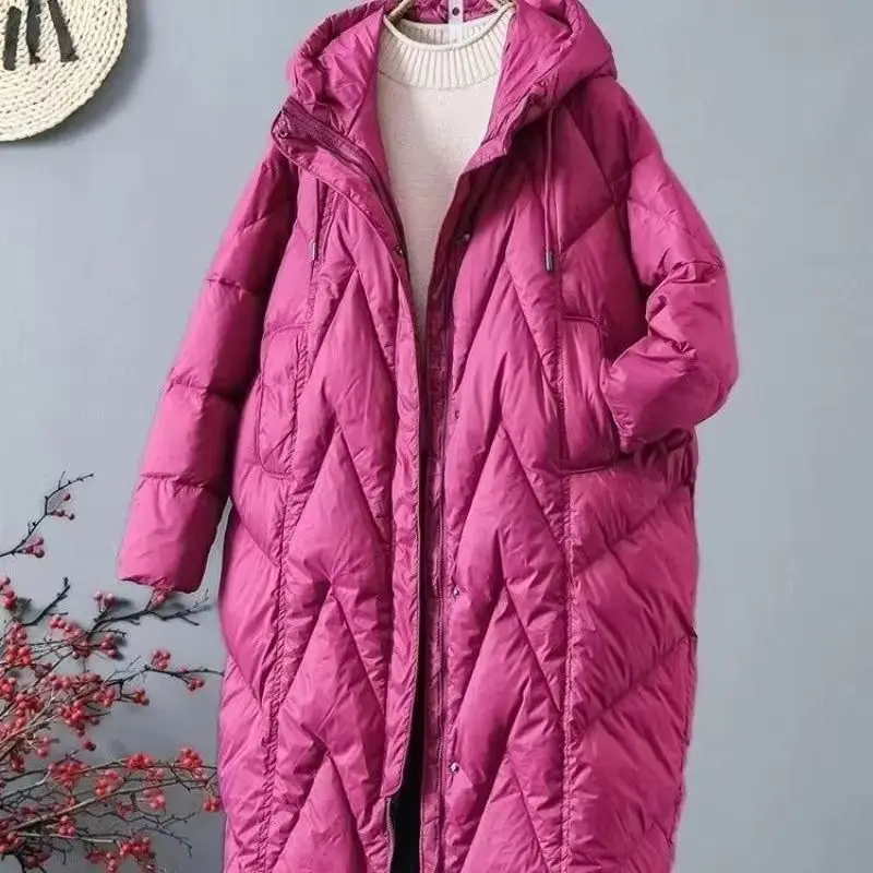 Giù di cotone 2025 delle nuove donne di inverno allentate e spesse con cappuccio lungo sopra il ginocchio giacca di cotone da donna caldo piumino di cotone