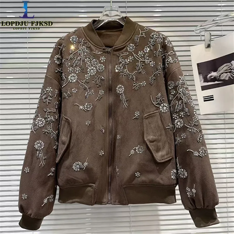 Nuovo Cappotto Invernale 2026 per Donna, Giacca in Cotone Larga Ricamata in Pelle Scamosciata con Perline e Borchie Stile Retrò Heavy Industry