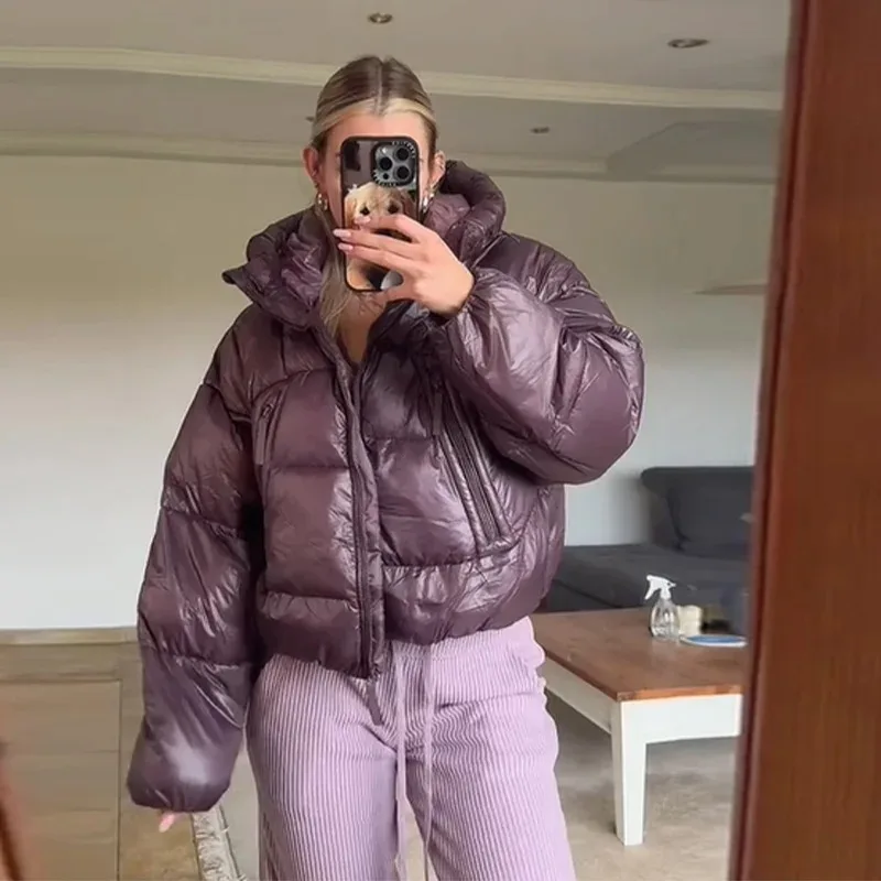 Cappotto Imbottito da Donna con Cappuccio e Tasche con Zip, Nuovo Stile Invernale 2025
