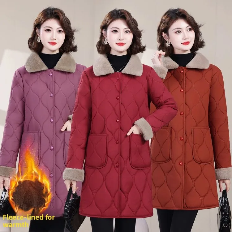 Nuovo Giaccone in Cotone 2025 con Collo in Pile, Lunghezza Media, Imbottito e Caldo, per Donna di Mezza Età e Anziana