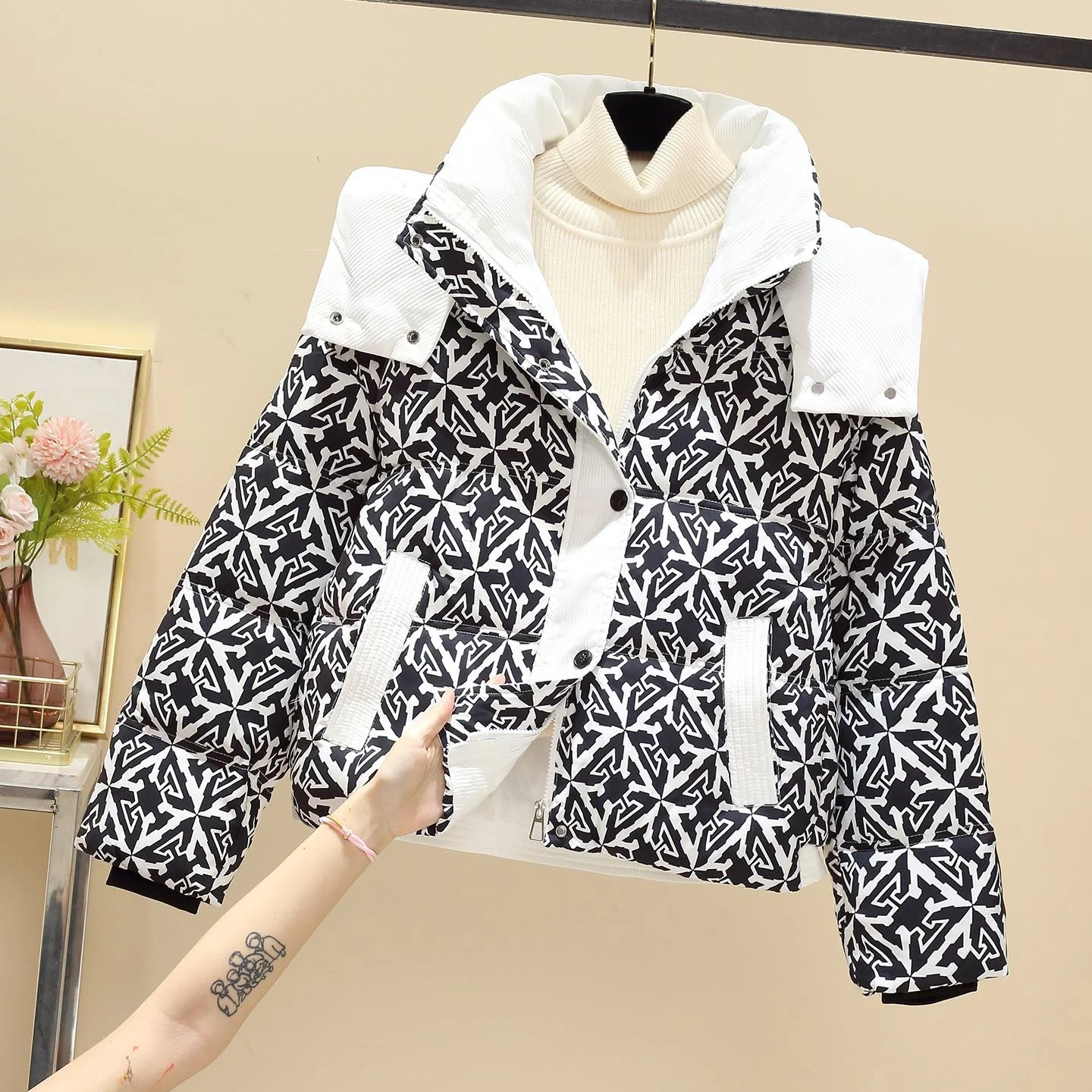 Giacca da donna in cotone imbottito con cappuccio staccabile, vestibilità ampia, inserto in piumino, stile coreano, per pendolarismo, cappotto corto con chiusura a cerniera