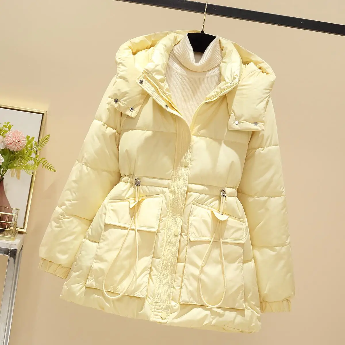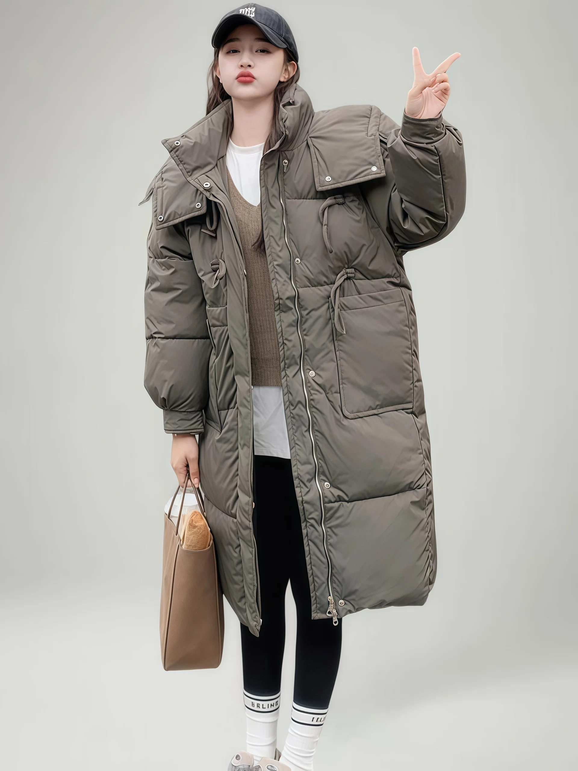 Caldo Bla Midi Cotton Jaet Donna Sle 2025 New Faion Vita-Accurante Autunno Inverno Pendolarismo Colore Adatto