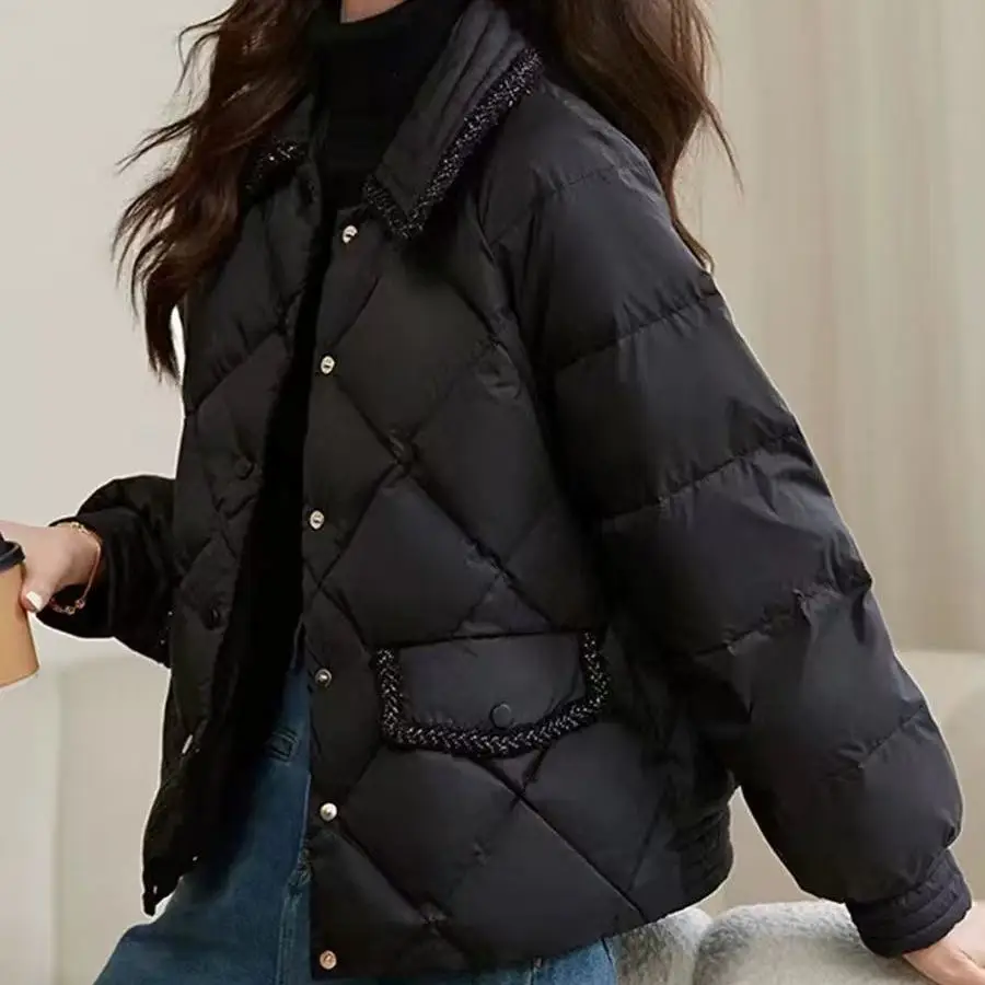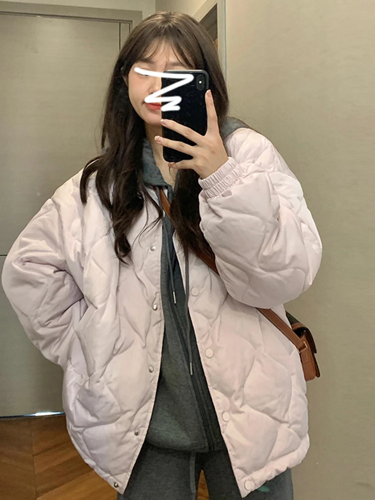 Piumino Invernale Corto da Donna Stile Coreano, Cappotto Imbottito con Chiusura a Bottoni, Imbottitura in Cotone, Vestibilità Ampia, Abbigliamento alla Moda per il Pendolarismo