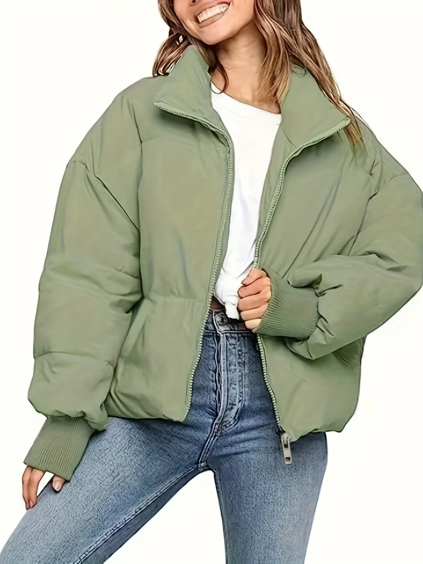 Piumino corto oversize ispessito, stile verde militare con cerniera, top caldo da donna per pendolari autunnali e invernali e streetwear