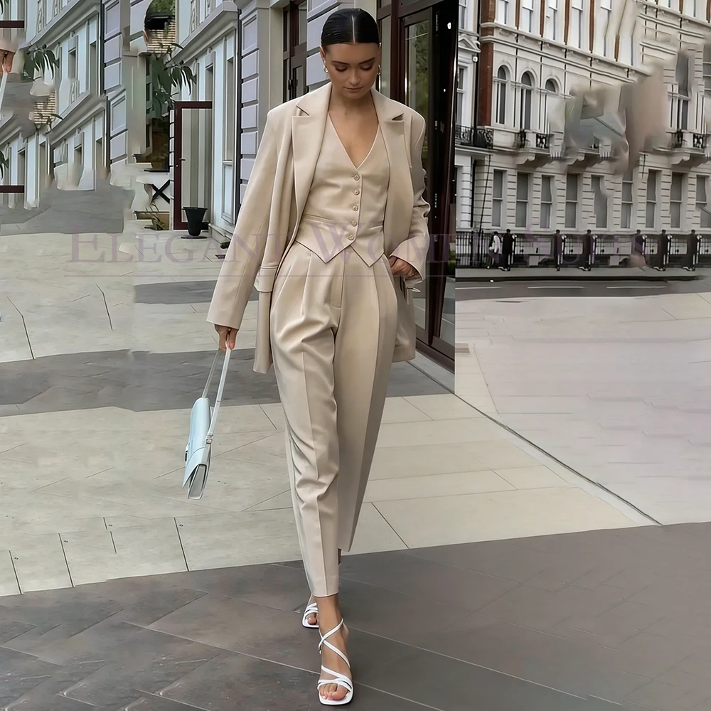 Eleganti Completi da Donna alla Moda, Giacca Monopetto con Risvolto a Tacca, Vestibilità Slim, Set 3 Pezzi con Giacca, Pantaloni e Gilet, Blazer di Alta Qualità per Ufficio
