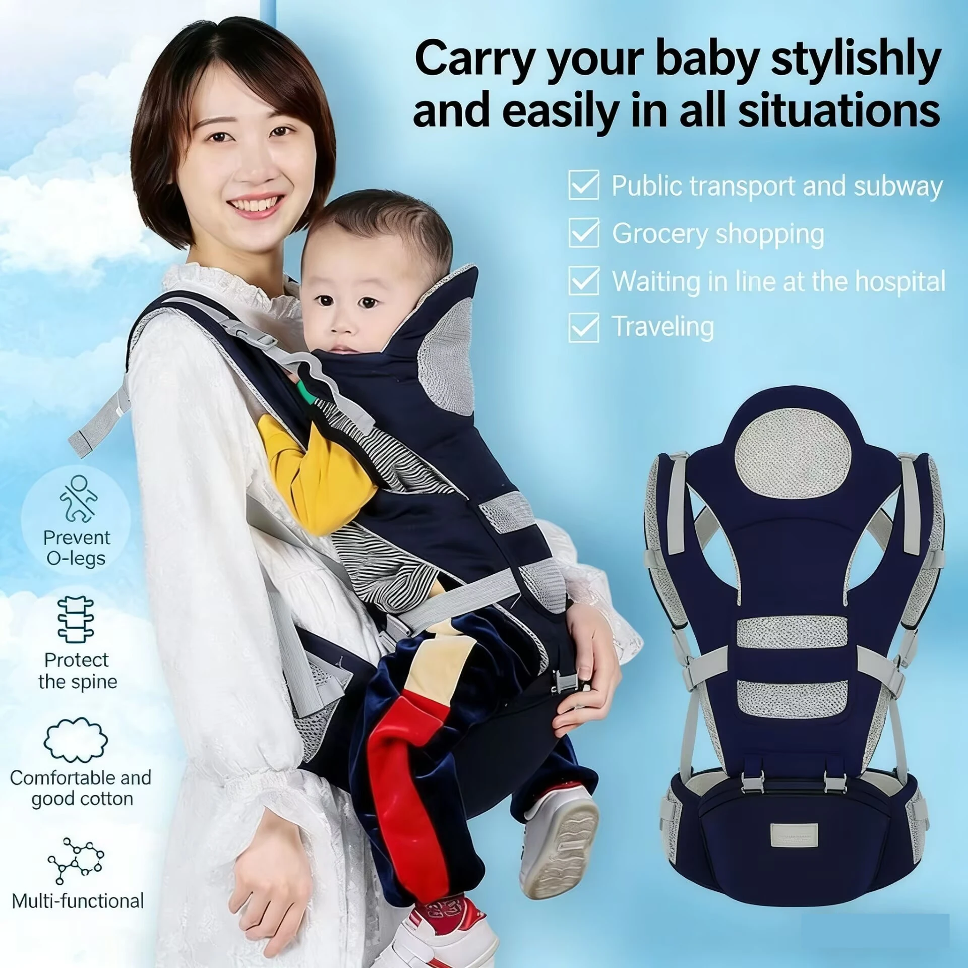 Marsupio per bambini Marsupio per bambini Nuova imbracatura per bambini Imbracatura portatile e leggera Sedile per anca antiscivolo che trasporta 10-30 libbre