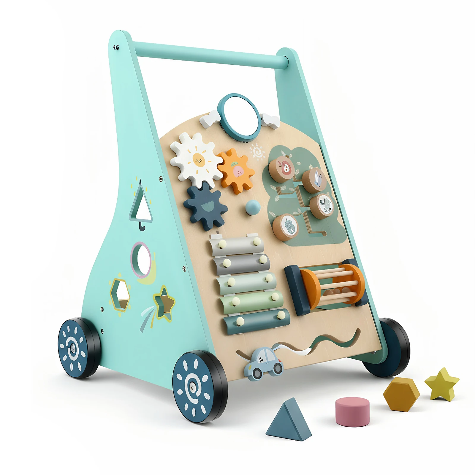 Girello in legno per bambini con centro attività per bambine e bambini 6-15 mesi, multifunzione, per l'apprendimento e il cammino, per neonati e bambini piccoli