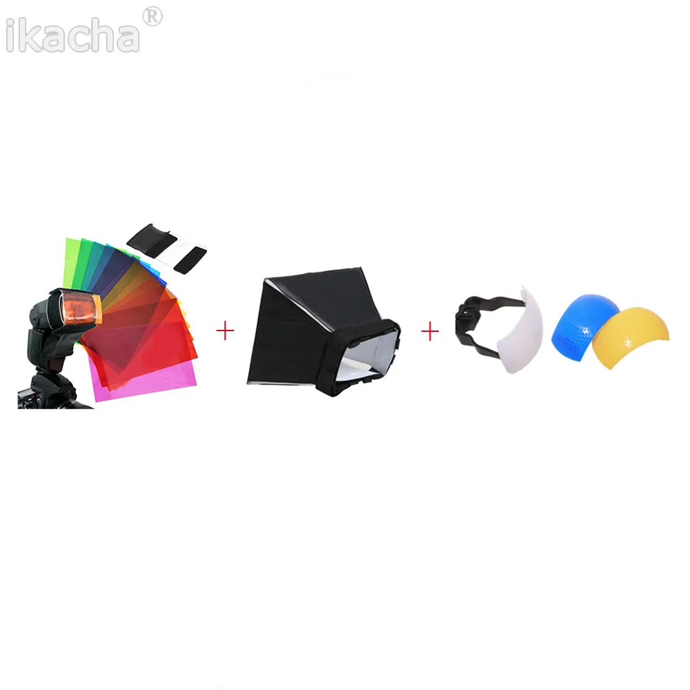 Diffusore di flash per schermo morbido 3 pz/lotto + 12 filtri gel a colori + diffusore di flash a 3 colori per Canon Nikon Sony tutti i flash DSLR Speedlite