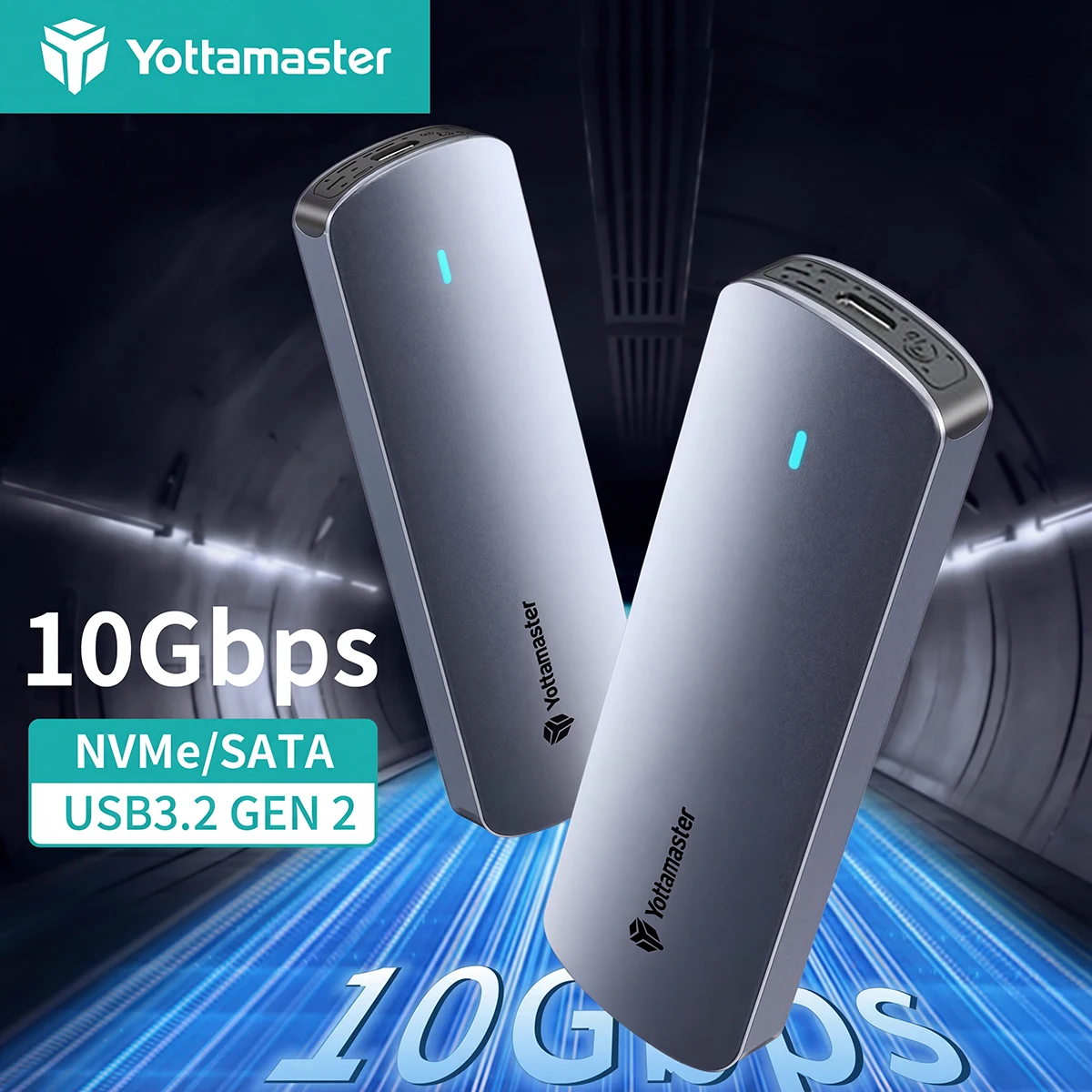 Yottamaster Custodia per disco rigido doppio protocollo da 10 Gbps Custodia SSD USB 3.2 NVME M.2 5 Gbps SATA USB C Unità a stato solido esterna BoX