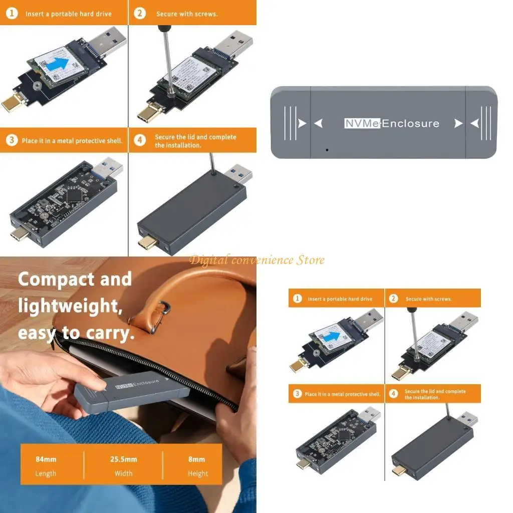 97QA Custodia magnetica M.2 2230 NVMe senza attrezzi Doppia porta USB Telaio in alluminio Velocità trasferimento 10 Gbps