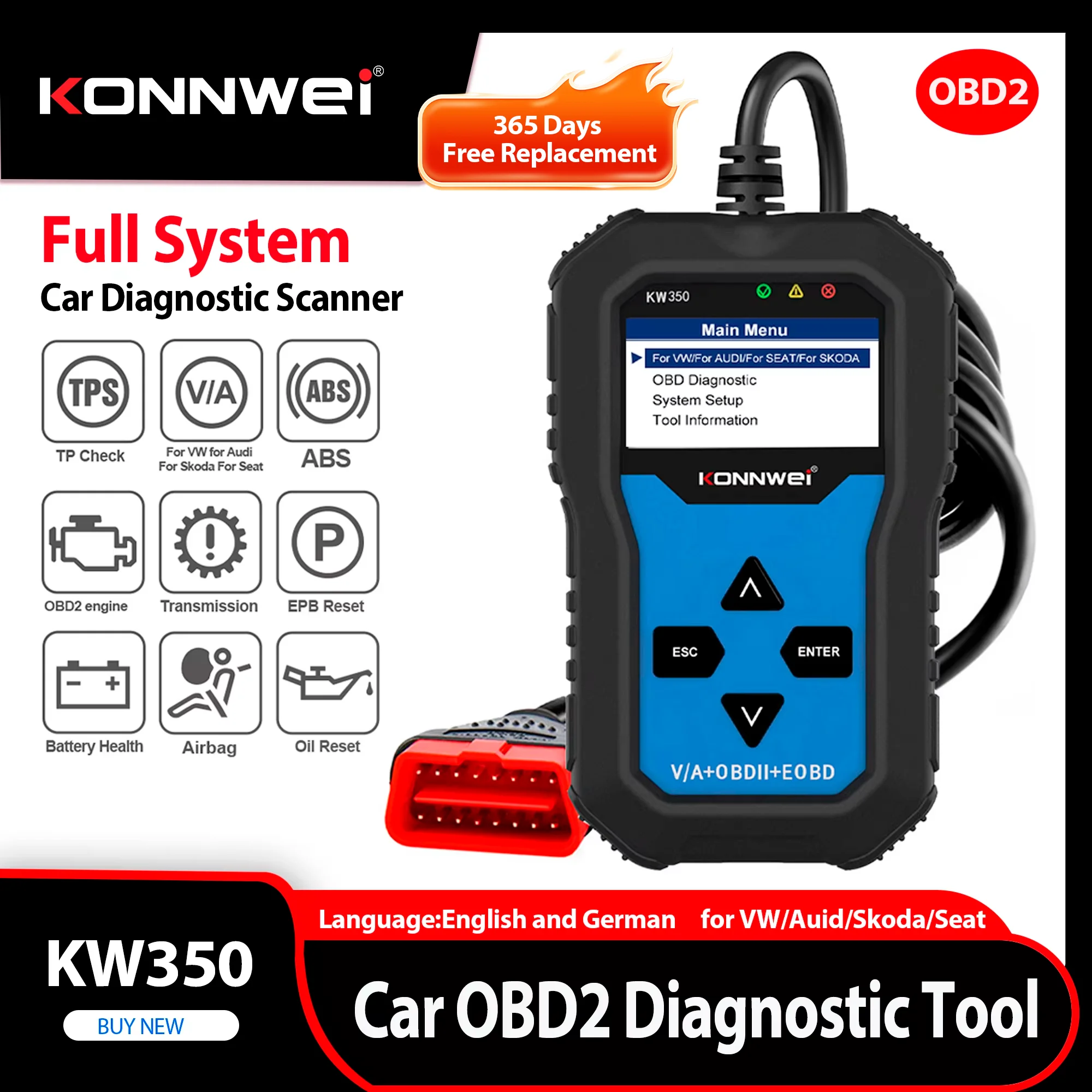ANCEL VD700 Scanner OBD2 professionale per VW per Audi per Seat per Skoda Oil EPB SAS TPMS Reset lettore di codici di sistema completo