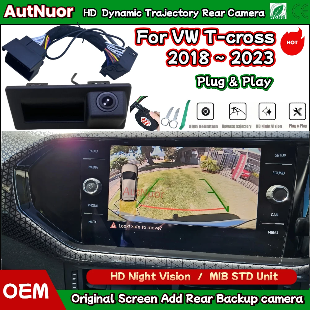 Per Volkswagen VW T-cross t cross 2018 ~ 2023 Bagagliaio di un'auto Retromarcia Telecamera per retromarcia Portellone Maniglia Traiettoria Dinamica HD
