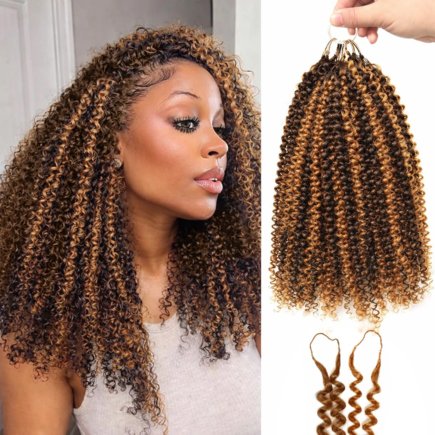 Extensioni per capelli umani ricci afro con effetto ombre P4/27, pre-separati, marrone scuro e biondo, con piume e riccioli Jerry