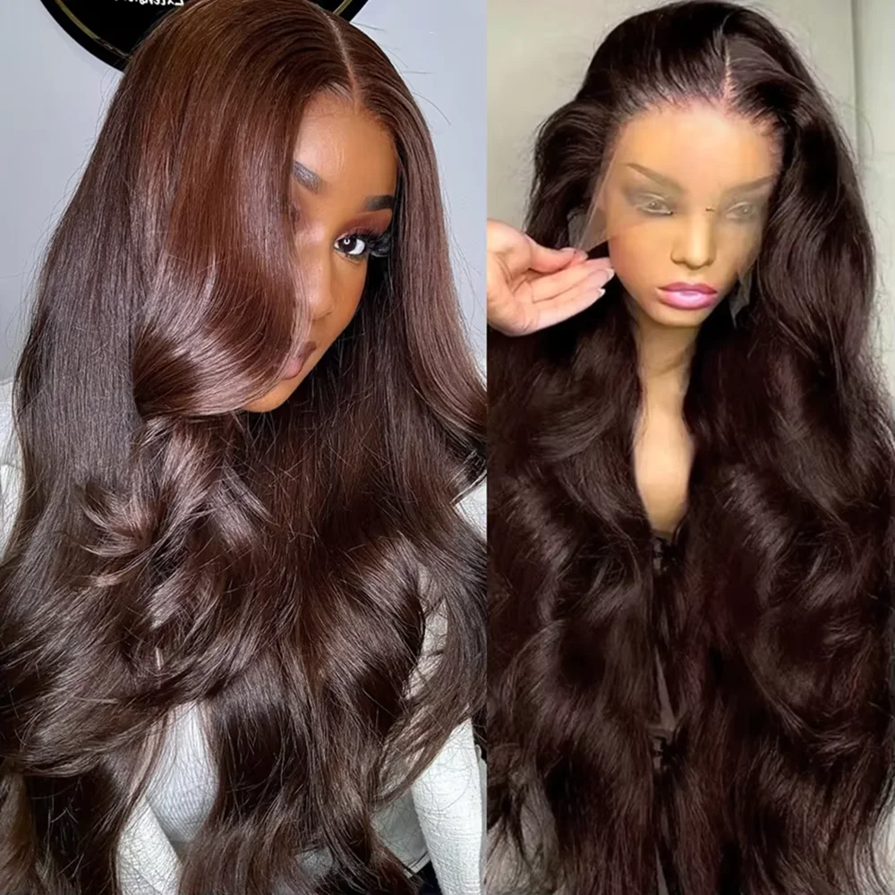 Parrucche per capelli umani color cioccolato Parrucca frontale in pizzo 13X6 HD Parrucca frontale in pizzo colorato 13X4 Parrucche anteriori in pizzo dritto Parrucca brasiliana pre pizzicata da 36 pollici
