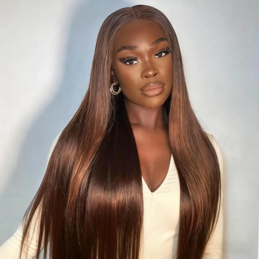 # Parrucca Marrone Cioccolato 4 Tinte, Capelli Umani, Frontale in Pizzo HD 13x6, Densità 200, Liscia, Pre-Pizzicata con Baby Hair, Senza Colla, per Donna