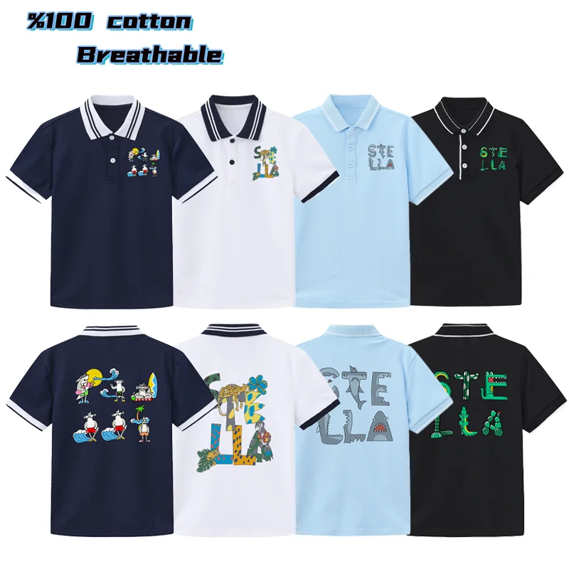 2025 vendita calda nuovi bambini polo ragazzo vestiti estivi tendenza sport casual bambino mezza manica risvolto top stampa polo per ragazzi adolescenti