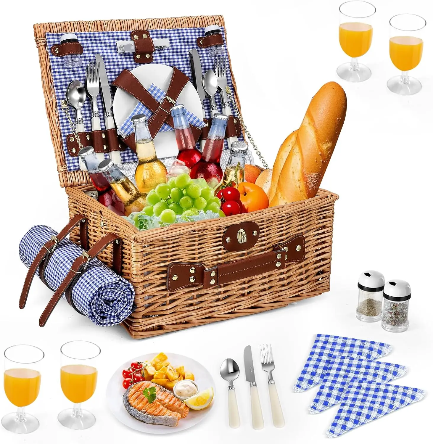 Cestino da picnic per 4 persone, Cestino da picnic con scomparto isotermico, Copertura e coperte da picnic impermeabili, Cestino da picnic da campeggio