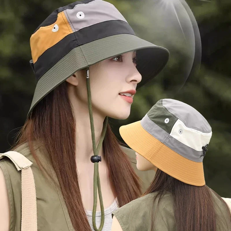 Cappello Estivo da Donna con Blocchi di Colore, Protezione UV, Traspirante, per Pesca, Campeggio, Escursionismo, con Cordino Antivento