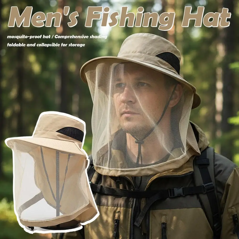 Cappello con protezione UV e maschera facciale, traspirante, anti-insetti, a tesa larga, per pesca, sport all'aperto, escursioni, campeggio, con rete.
