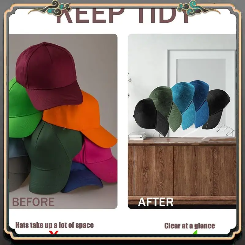 Supporto per cappelli premium da 2 pezzi per berretti da baseball, organizer per cappelli in acrilico per 14 berretti da baseball Porta cappelli da baseball senza installazione