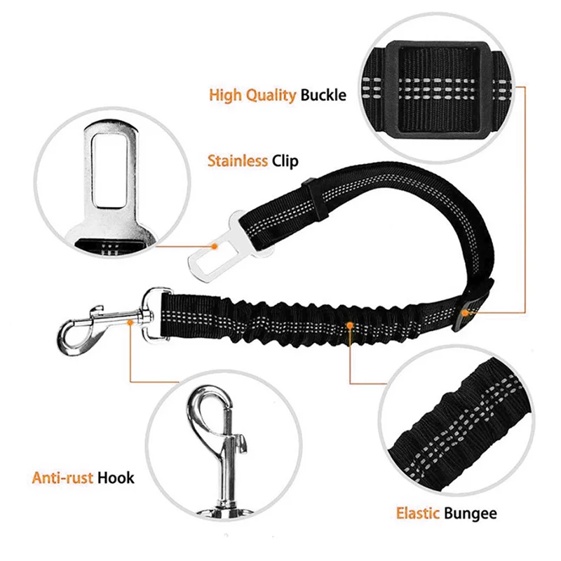 Cintura di sicurezza per animali domestici in nylon resistente, corda di sicurezza elastica riflettente regolabile per vagone Bulldog francese A2