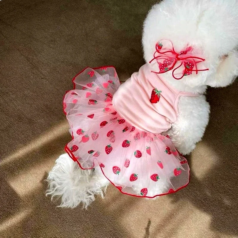 Simpatico vestito per cani da compagnia Rosa con stampa di ciliegie Vestiti per cani Gonna con bretelle Chihuahua Bulldog francese Abbigliamento per gatti Costume per cani da ragazza