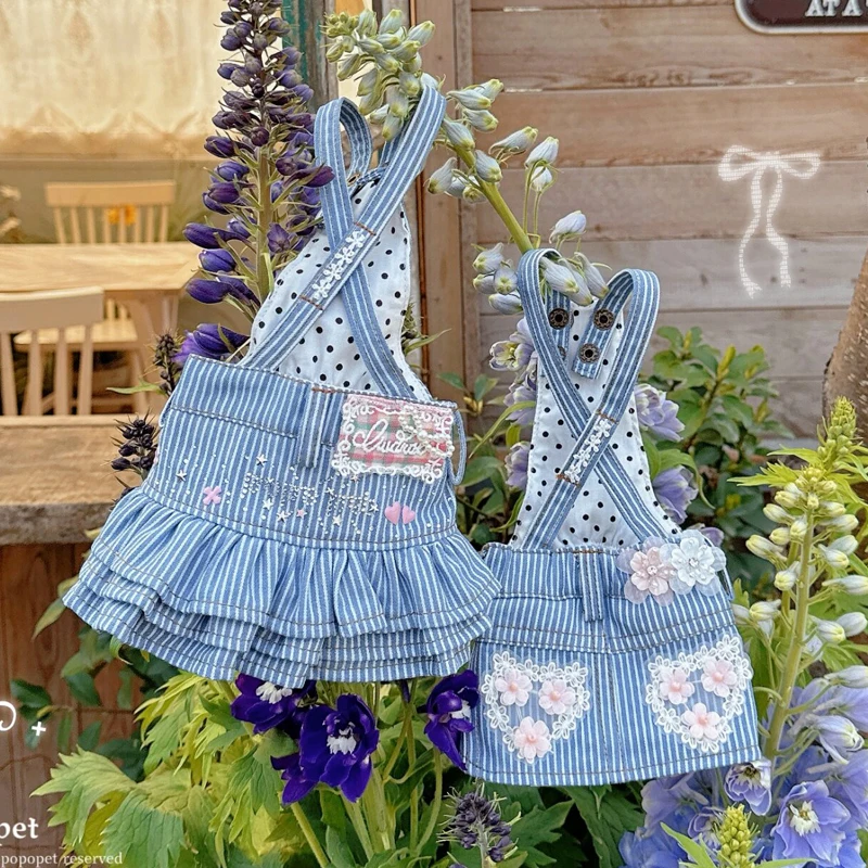 Abbigliamento per Cuccioli Primavera 2026, Salopette Casual, Gonne in Denim a Righe Blu e Bianche per Cani Piccoli e Medi, Vestiti per Animali Domestici Yorkshire